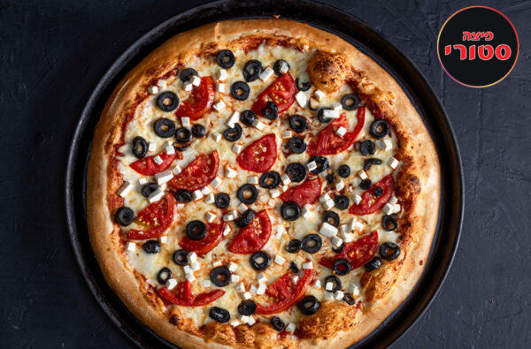 פיצה משפחתית יוונית/ חריפה+ לחם שום+ 2 פחיות בפיצה שמש