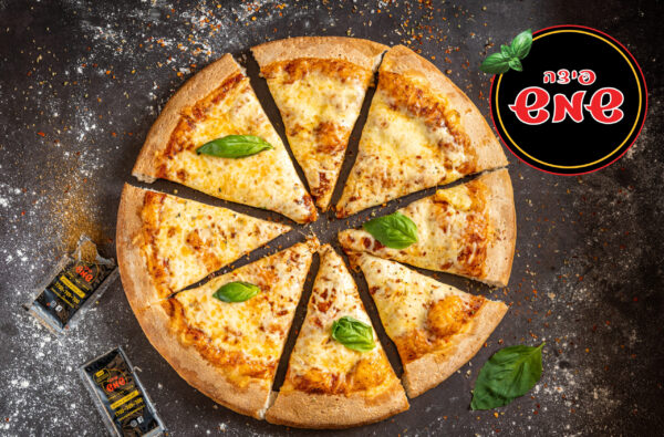 פיצה משפחתית+ לחם שום+ זיווה גבינות+ שתיה ורטבים בפיצה שמש